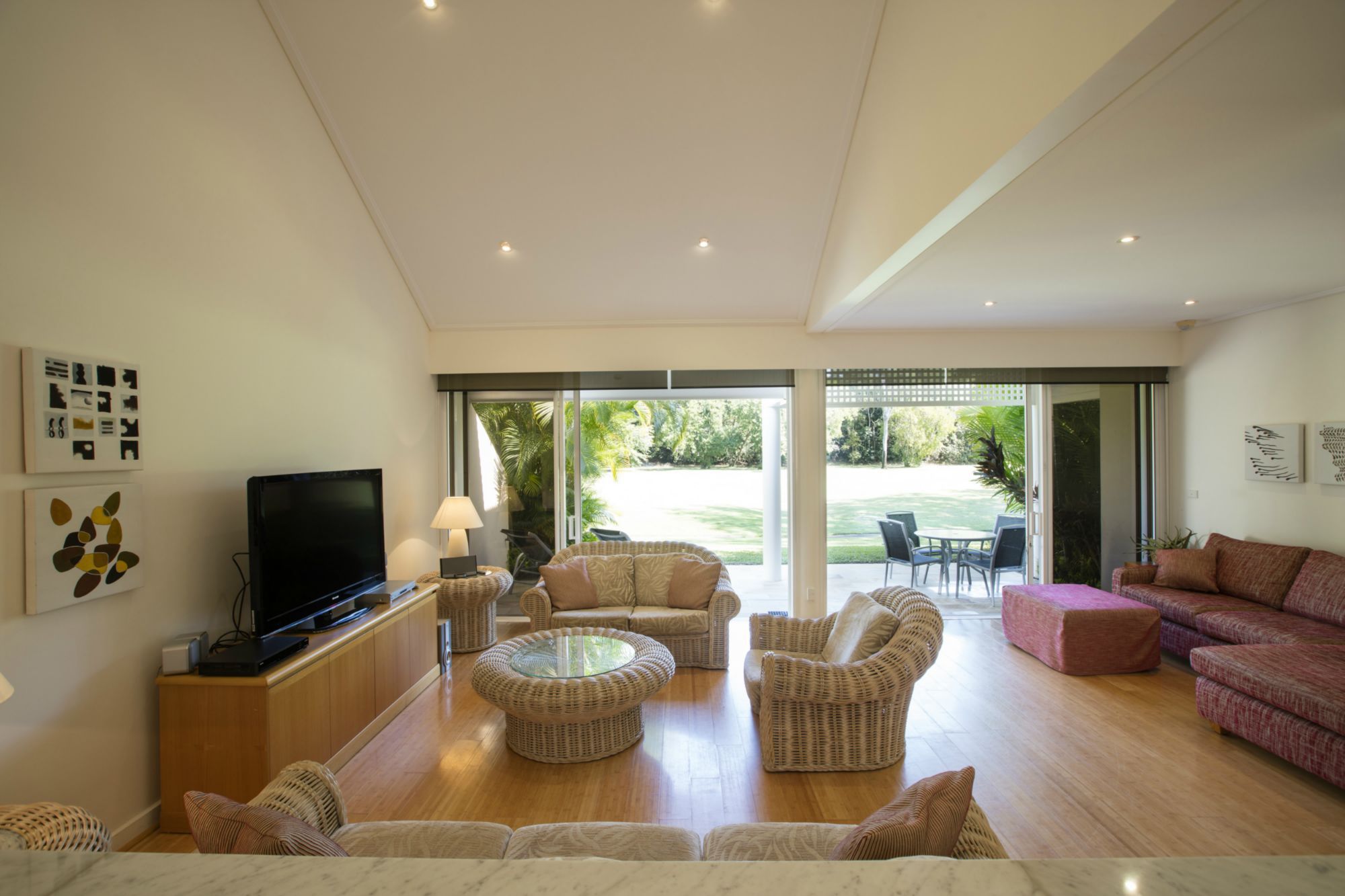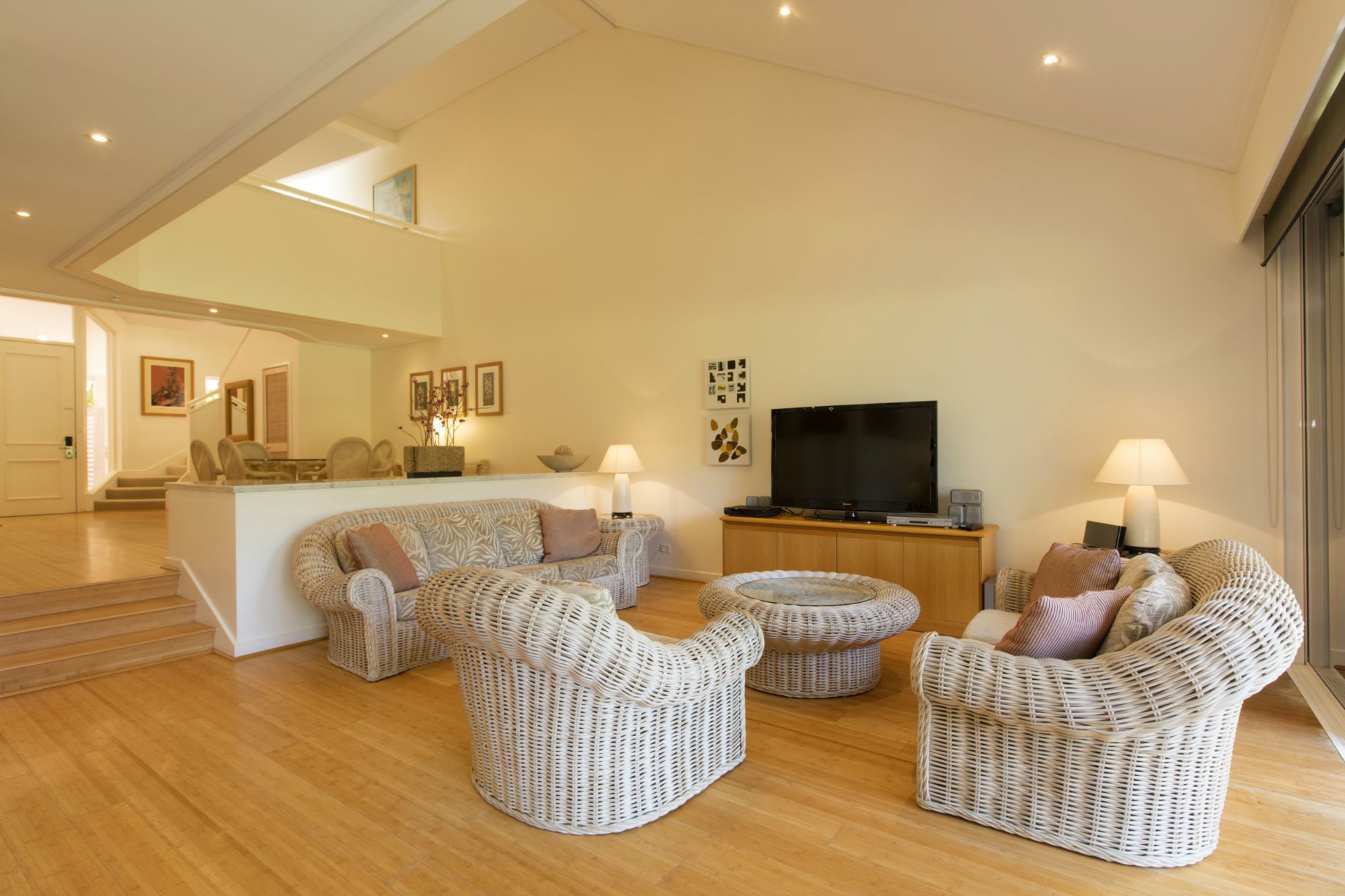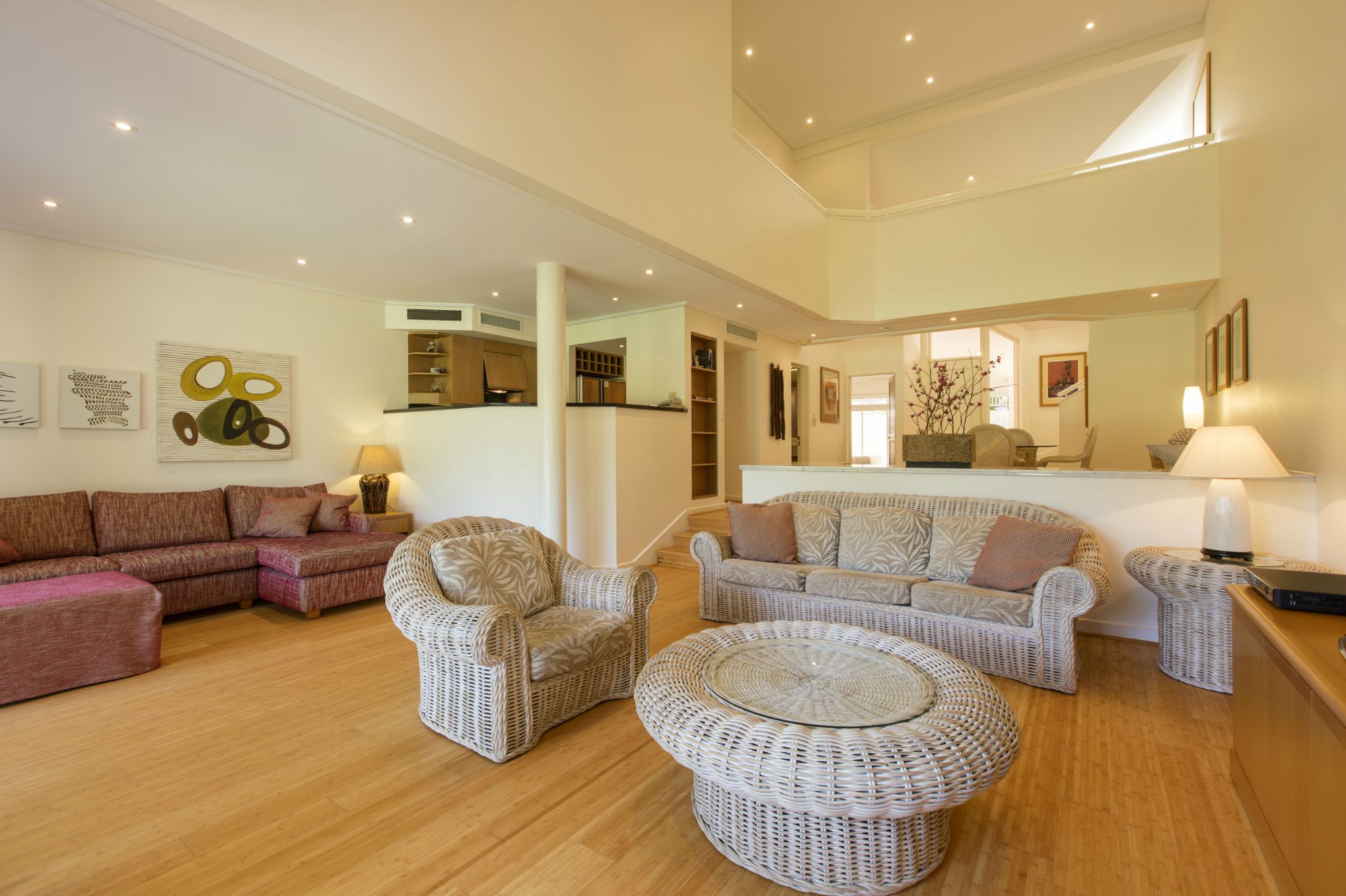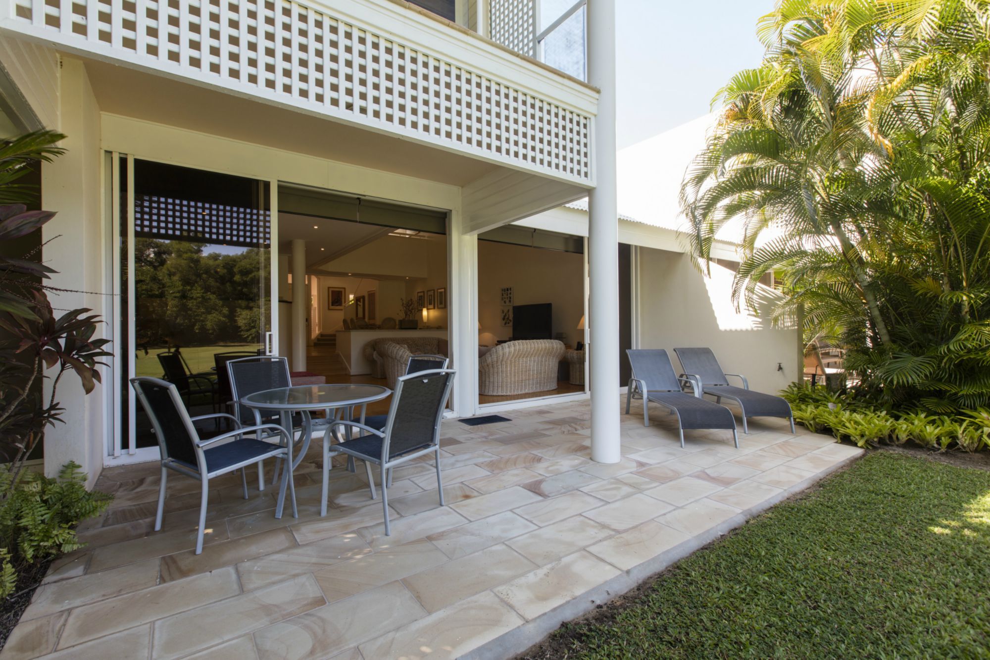 Bamboo Flooring throughout the downstairs living, lounge and kitchen areas sets up the tropical Port Douglas feel. The super comfortable couches then complete this relaxed feeling after a hard day by the pool or on the golf course.